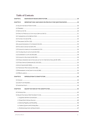 Quick reference charts for revision Tabular representation of 200+ landmark case laws Based on previous years judiciary exams question papers Covers important topics for all competitive exams Easy to understand organized content.